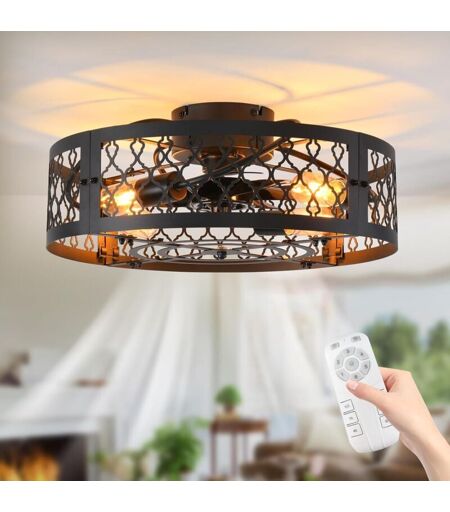 GANEED Plafoniera con Ventilatore Stile Industriale Ventilatore da Soffitto Fattoria 50cm Illuminazione Gabbia in Metallo Opaco E27 Montaggio A