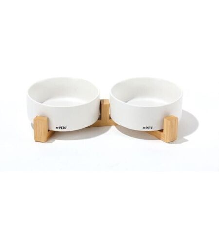 M PETS Ciotole in ceramica con supporto in bambù 2x350 ml - Mpets - OPERA - Bianco