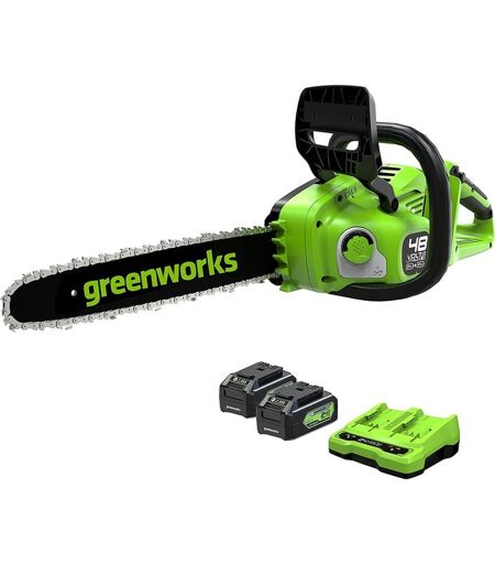 GREENWORKS 48V(2x24V) Motosega a Batteria con Motore Brushless, Lunghezza Barra 14 Pollice (35cm), Velocità Catena 20m/s, con due 4Ah e