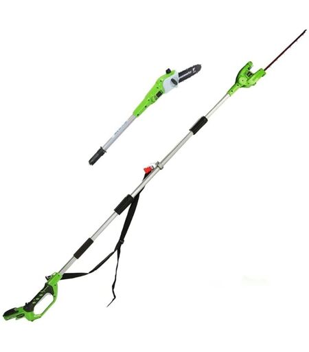 GREENWORKS TOOL Greenworks G24PSH Sega e Tagliasiepi ad Asta a Batteria 2 in 1 con Tracolla, Barra della Sega ad Asta 20cm, Lame Tagliasiepi 51cm a Doppia Azione
