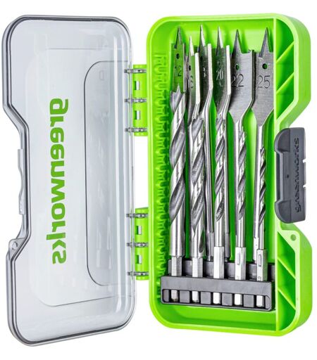 Greenworks Bit di avvitamento per trapano (set completo da 11 bit con laccatura argentata e bianca, punte elicoidali per legno da 4mm a 25mm adatte a tutti i trapani e avvitatori a batteria) I bit per trapano adatti a tutti i tipi di legno convenzionale. I bit Greenworks sono compatibili con tutti i trapani e gli avvitatori a batteria convenzionali. Nella spedizione sono compresi i bit seguenti: 12mm Spade Bits Silver Finishes x 1 16mm Spade Bits Silver Finishes x 1 18mm Spade Bits Silver Finishes x 1 20mm Spade Bits Silver Finishes x 1 22mm Spade Bits Silver Finishes x 1 25mm Spade Bits Silver Finishes x 1 4.0mm Brad Point Bit, Black and Silver Finishes x 1 5.0mm Brad Point Bit, Black and Silver Finishes x 1 6.0mm Brad Point Bit, Black and Silver Finishes x 1 8.0mm Brad Point Bit, Black and Silver Finishes x 1 10.0mm Brad Point Bit, Black and Silver Finishes x 1 ...