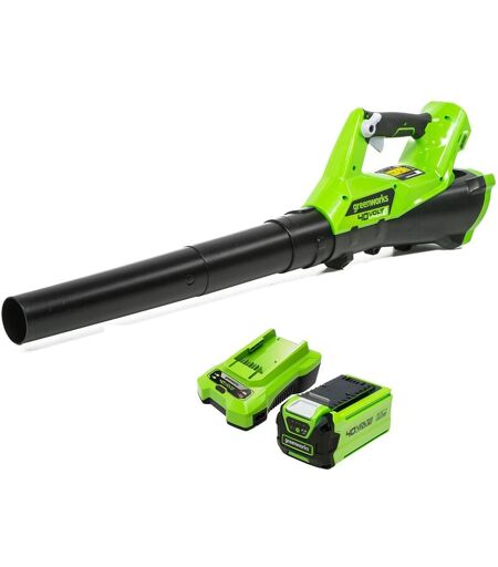 GREENWORKS G40ABK2 Souffleur à Batterie Axial de Feuilles Mortes Sans Fil, avec Régulateur de Vitesse, 177 km/h, 11,05 m³/min, Batterie 40V 2Ah et Chargeur,