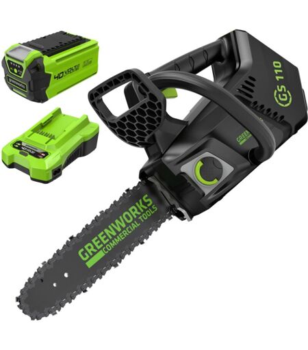 GREENWORKS GD40TCSK2 Motosega a Batteria con Impugnatura Superiore, Motore Brushless, Lunghezza Barra 25cm, Velocità Catena 12m/s, 2,4kg, Auto-Lubrificante,