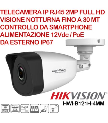 HIKVISION - Telecamera Bullet Hiwatch HWI-B121H-4MM ip 2.0 Megapixel Full hd, ottica fissa 4mm, PoE, IP67