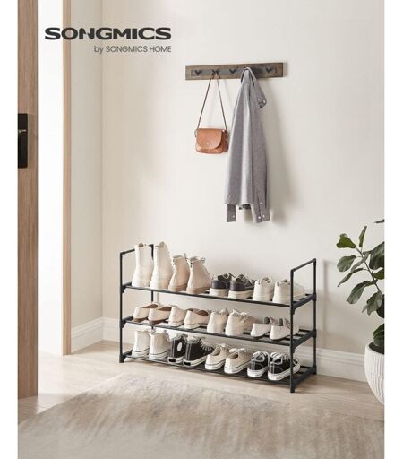 SONGMICS - Scarpiera a 3 Ripiani, Scaffale Portascarpe, Organizzatore in Metallo, per 12/15 Paia di Scarpe, Impilabile, Corridoio, Soggiorno, Camera