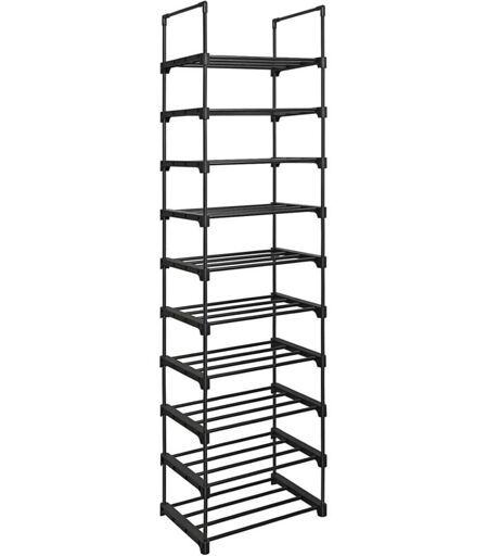 SONGMICS - Scarpiera a 10 Ripiani Grande, Scaffale Portascarpe in Metallo, Fai da Te, Scaffale Salvaspazio e Versatile per Ingresso Soggiorno Camera