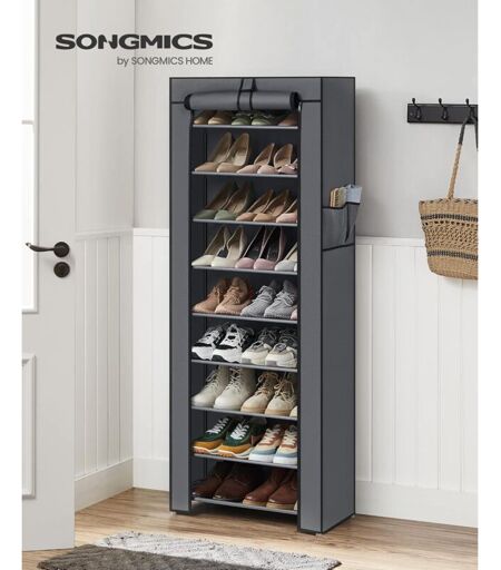 SONGMICS Scarpiera di Tessuto a 10 Ripiani, Scaffale Portascarpe 28 x 58 x 160 cm con Copertura di Tessuto, per Scarpe da Ginnastica, Tacchi Alti,