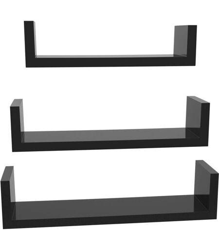SONGMICS - Muro, Set da 3, Parete, 30/35/40 cm, Mensole Decorative, Portata di 10 kg, per Soggiorno Studio Bagno Cucina, Nero Lucido LWS40BK, Legno