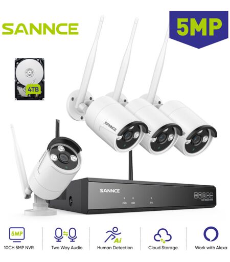 SANNCE 5MP kit videosorveglianza wireless full 4 telecamere smart senza fili remoto sicurezza sistema - 4TB hdd -