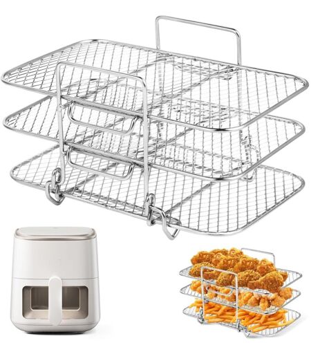 Griglia per friggitrice ad aria - Accessori per friggitrice ad aria - Multifunzione a tre strati impilabile compatibile - Acciaio inossidabile 304