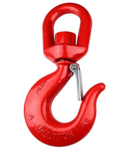 Gancio girevole con fermo: un robusto gancio girevole in lega di acciaio forgiato Ganci di sollevamento rotanti a 360° : progettato per essere utilizzato come dispositivo di posizionamento destinato a ruotare sotto carico Limite di carico: gancio girevole per attrezzatura con un limite di carico massimo di 3 tonnellate Utilizzo del gancio della gru: un dispositivo di posizionamento e non è destinato a ruotare sotto carico Misure precauzionali: seguire le procedure appropriate; la caduta del carico può causare gravi lesioni; Evitare di caricare una forza superiore al limite di carico di lavoro assegnato al gancio ...