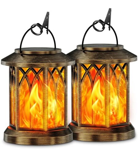 Luci solari sospese da giardino per esterni con effetti fiamma realistici, luci solari impermeabili IP65, decorazione da giardino con clip per
