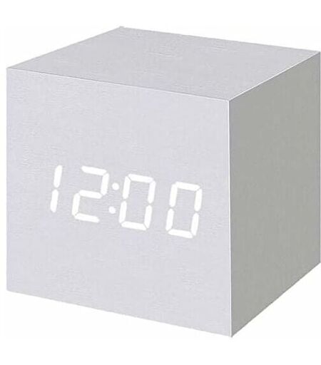 YMYNY Sveglia digitale a LED in legno, orologio digitale a cubo con visualizzazione di data e temperatura, alimentato tramite USB/batteria (bianco)