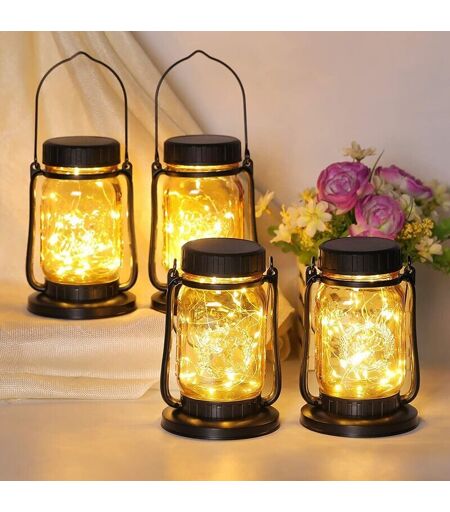 YMYNY Lanterna solare 4 confezioni luci solari sospese per esterni, lanterna solare in metallo e vetro con angelo, decorazione solare da giardino