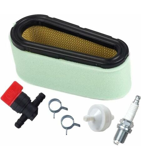 1. Dimensioni del filtro dell'aria: Altezza 3", Lunghezza 7-1/4", Larghezza all'estremità stretta 2-3/16", Larghezza all'estremità più larga 2-7/8". Sostituisce Briggs Stratton 496894s 496894 493909 4139 5053b 5053d 5053h 5053K; John Deree LG496894JD LG496894S; Artigiano 24151; Prefiltro di ricambio per Briggs Stratton 272403s 272403 4142; John Deere m143004 lg272403s lg272403 2. Filtro carburante per raccordo da 1/4", adatto per tubi del carburante da 3/16 a 1/4". Ricambio per Briggs Stratton 394358 394358s 4112 5098h 5098k; semplicità 173206 173206sm 2173206 2173206sm ; gravemente 21534000 ; Subaru 263–65011-a0; Ariani 21534000; TORO 56–6460 3. Valvola di intercettazione del carburante per tubo del carburante da 1/4". Sostituisce i modelli Briggs Stratton 494768 493960 698183 698181 697947 5019h 5019 K; TORO 1–603770 54–3150; Murray Snapper 7034212yp 7034212; John Deere am107340 am36141 4. Adatto per Briggs Stratton 282700 283700 286700 287700 28 M700 28 N700 28p700 28q700 28r700 ...