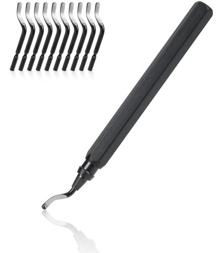 FUIENKO ® Utensile per sbavatura manuale, 1 impugnatura in metallo + 11 lame BS1010 HSS Lame per sbavatura in metallo rotanti a 360° per tubi di stampa 3D,