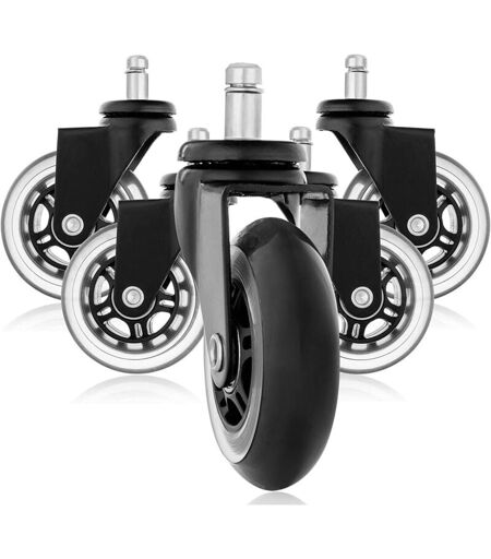 DPZO Set di 5 rotelle silenziose in gomma per sedie da ufficio, ideali per pavimenti in legno, moquette e piastrelle