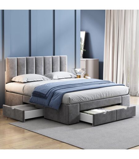 REDOM - Letto imbottito letto matrimoniale letto contenitore con rete a doghe (con 4 cassetti (140x200 cm)