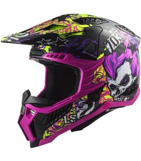 Casco Cross Carbonio Ls2 MX703 X-Force Fireskull Viola Lucido 4XL