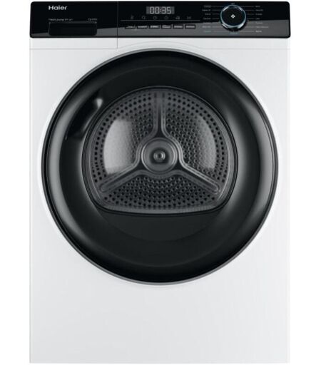 Haier I-Pro Series 3 HD90-A2939. Posizionamento dell'apparecchio: Libera installazione, Tipo di carica: Caricamento frontale, Sistema di asciugatura: Pompa di calore. Capacità cestello: 9 kg, Condensation efficiency class (old): B, Programmi di asciugatura: Cura del bambino, Camicia/maglietta, Cotone, Delicati/Seta, Mix, Rapido, Sport, Sintetico. Partenza ritardata: 24 h. Consumo energetico: 2,1 kWh, Consumo energetico annuo: 258 kWh, Fonte di calore: Elettrico. Profondità: 665 mm, Larghezza: 595 mm, Altezza: 850 mm ...
