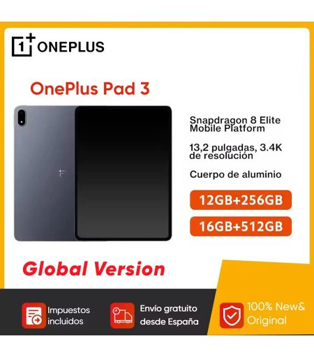 OnePlus Versione globale Pad 3 Tablet da 13,2 pollici Schermo 144Hz 12140mAh Snapdragon 8 Batteria 13MP Fotocamera posteriore 8 Altoparlanti Carica 80W