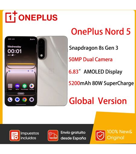 OnePlus Nord 5 Smartphone 5G Snapdragon 8s Gen 3 Display AMOLED da 6,83" 144 Hz 6800 mAh 80 W SUPERVOOC Ricarica 50 MP Doppia fotocamera ...