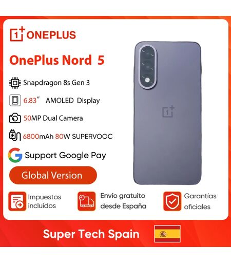 Oneplus Nord 5 Smartphone 5g Snapdragon 8S Gen 3 Display Amoled da 6,83" 144 Hz 5200Mah 80W Supervooc Ricarica 50Mp Doppia fotocamera ...