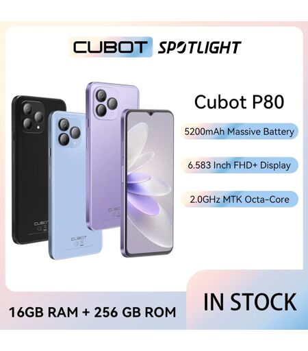 Cubot Global Version Smartphone Android P80, telefono Android 13, 8 GB di RAM, ROM 256 GB/512 GB, NFC, schermo grande da 6,583", fotocamera 48 MP ...