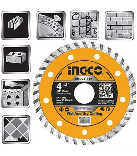 INGCO DMD031152 Disco diamantato turbo a corona continua 115 mm -