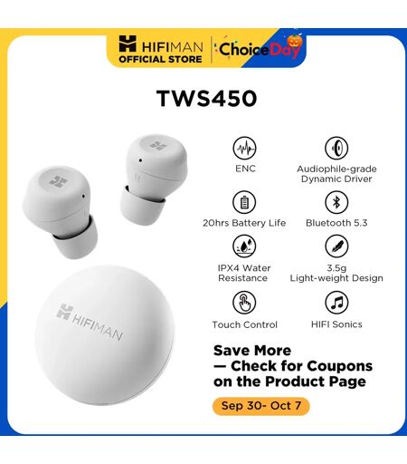 Cuffie stereo True Wireless HIFIMAN TWS450 con cancellazione del rumore ambientale e driver dinamico di livello audiofilo ...