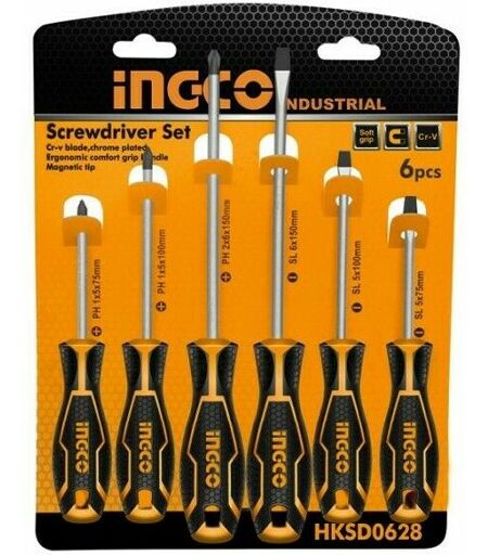 DESCRIZIONE : Set cacciaviti 6 pz Impugnatura nuovo design Cr-V Lama arrotondata 1pz SL5.5x5x75 1pz SL5.5x5x100 1pz SL6.5x6x150 1pz PH1x5x75 1pz PH1x5x100 1pz PH2x6x150 Appendibile ...