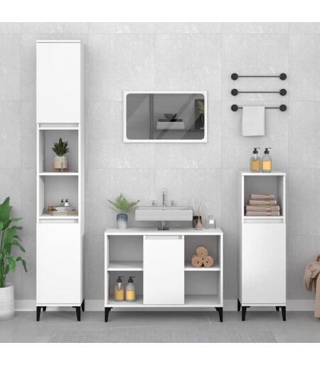 BONNEVIE - Mobile Bagno Lavabo, Mobile base lavabo, Armadietto da Terra Mobiletto Bianco 80x33x60 cm in Legno Multistrato HWQ35845
