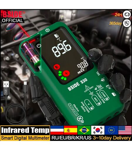 Multimetro digitale BSIDE Smart Infrared Temperature 15V diodo LED Tester True RMS 9999 DC AC tensione ricaricabile Multiteter DMM ...