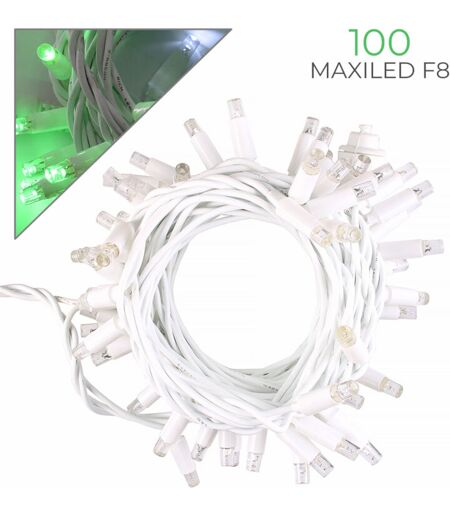 Wisdom Catena luminosa professionale 100 maxi-led F8 cavo bianco luce verde fissa e bianca intermittente - ideale per decorazioni festive ed eventi speciali