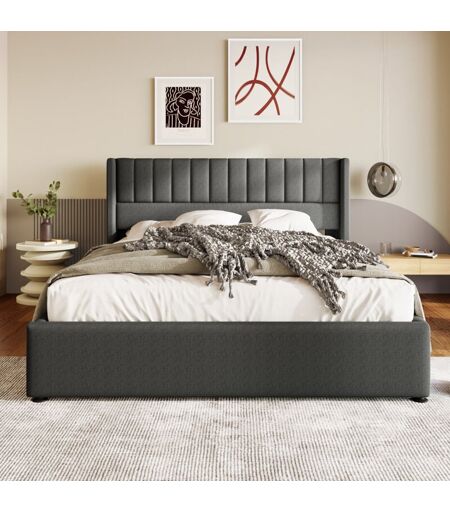 REDOM Letto imbottito con contenitore letto idraulico (lino grigio 180x200 cm senza materasso)