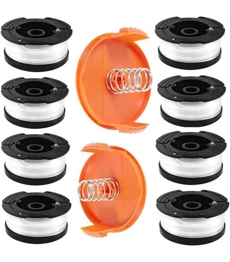 Bobina di filo per decespugliatore Black and Decker, confezione da 8 bobine di filo per decespugliatore con 2 copri bobina e 2 molle, bobine A6481