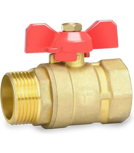 AAFGVC Valvola a sfera in ottone da 1 pollice con maniglia a farfalla rossa - passaggio totale maschio/femmina DN25 PN16