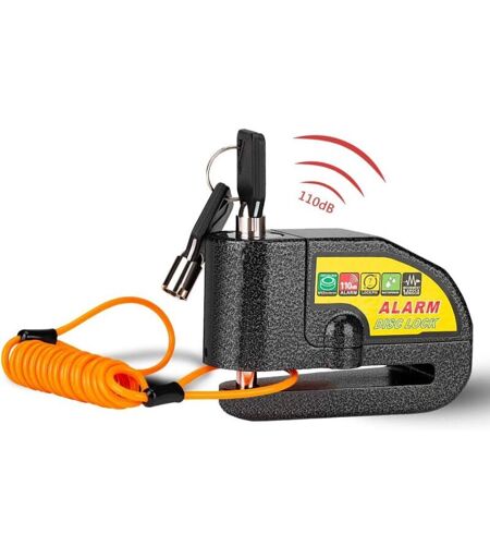 BRIDAY Blocca disco con allarme antifurto per moto, blocca disco per scooter con allarme da 110 dB, 2 chiavi, cavo antifurto da 1,5 m, 1 confezione di