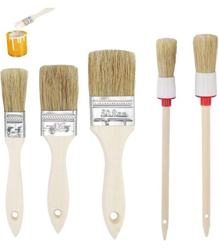 LARGEIGHT pennelli per pittura, 3 piatti e 2 rotondi, set di pennelli piatti, pennelli per pittura murale, pennelli per pittura, 5 diverse misure