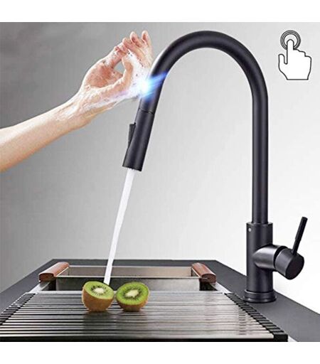 AIPERQ Rubinetto da cucina con sensore touch in acciaio inox nero, miscelatore per lavello da cucina a due vie con doccetta estraibile, maniglia singola