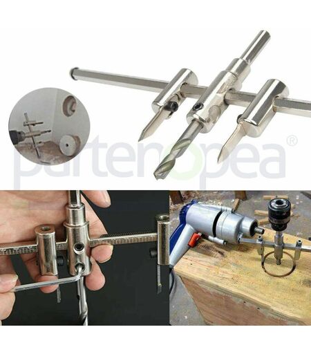 Punta trapano fresa a compasso da 30 a 120 mm sega a tazza foro regolabile DESCRIZIONE PRODOTTO Tipo Sega a Tazza Regolabile di Alta Qualità: Acciaio al carbonio, lavorazione fine, design a doppia lama, taglio più rapido e pulito. Dimensioni Regolabili: La distanza regolabile è di 30 - 120 mm, è possibile regolare il diametro del cerchio secondo necessità per fornire un taglio pulito. Dotato di cacciavite esagonale e barra di scorrimento con scala metrica di facile lettura. La profondità di taglio di fresa circolare regolabile è circa 30 mm. Inserti Rimovibili: Fresa a compasso include 2 lama in lega e 2 lama in acciaio ad alta velocità. La lama può essere liberamente smontata, facile da regolare e può tagliare legno, cartongesso, compensato ecc.. Ampia Gamma di Applicazioni: La fresa regolabile per legno è adatta per trapani a mano, trapani da banco, ecc., Adatte per il taglio di una varietà di materiali, pannelli decorativi compositi in alluminio, cartongesso, compensato, plastica, ...