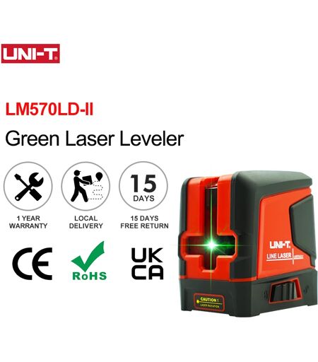 UNI-T LM570LD-II Livellatore laser a 2 linee Strumento di misurazione del layout della linea trasversale orizzontale verticale autolivellante a raggio verde ...