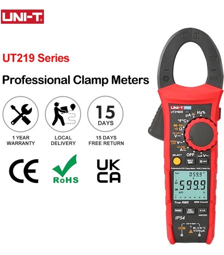 UNI-T Pinza amperometrica digitale professionale 1000V AC DC UT219DS UT219E Vero RMS Spegnimento automatico Test sequenza motore trifase Inrush ...