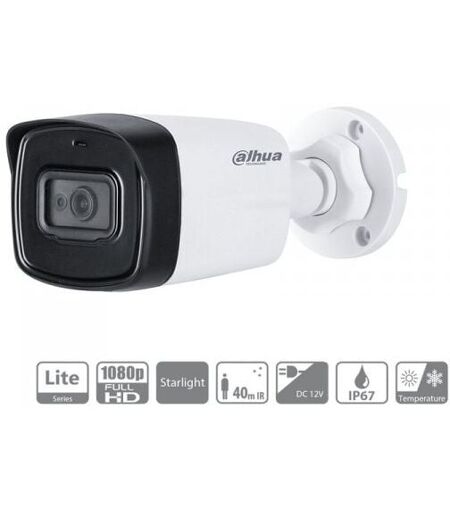DAHUA Telecamera Analogica Bullet 1080P 2MP Starlight Ottica Fissa 3.6mm IP67 DC12V HDCVI Smart IR Carcassa Plastica HAC-HFW1230TLP