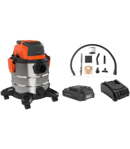 Aspirapolvere e liquidi 20 V Motore 20V - Batteria 4 Ah Potenza: 240 W Potenza di aspirazione: 9 Kpa Serbatoio in acciaio inox 4 Ruote girevoli Fornito con filtro e accessori Garanzia di 2 anni ...