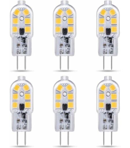 【G4 12V 2W】: LED G4 12V CA/CC. Se si desidera utilizzarlo con l'illuminazione domestica standard da 110-240 V, assicurarsi che il trasformatore sia compatibile con la lampadina LED. L'utilizzo di un trasformatore alogeno causerà facilmente sfarfallio. 【Risparmio energetico】: LED G4 12V 2W Bianco freddo 6000k con 12 LED SMD 2835, 200LM, angolo del fascio di 360 gradi. Il Mini LED G4 da 2W è la sostituzione ideale per la lampada alogena bispina G4 da 10-20W, riducendo il consumo energetico di oltre l'85%. 【Facile da 【installare】: la durata media di questa lampada LED G4 è di 30.000 ore. Accensione immediata, senza tempi di riscaldamento. Utilizzato per l'illuminazione della cabina. 【Sicurezza 【Ecologico】: LED G4 12 volt bianco freddo per cappa da cucina. Senza piombo né mercurio. Nessun rumore o sfarfallio. Luci senza sfarfallio e senza abbagliamento. Ideale per l'illuminazione interna di roulotte e camper. 【Applicazioni】: Il LED G4 12V 2W è ideale per cappe aspiranti, cappe da cucina, ...