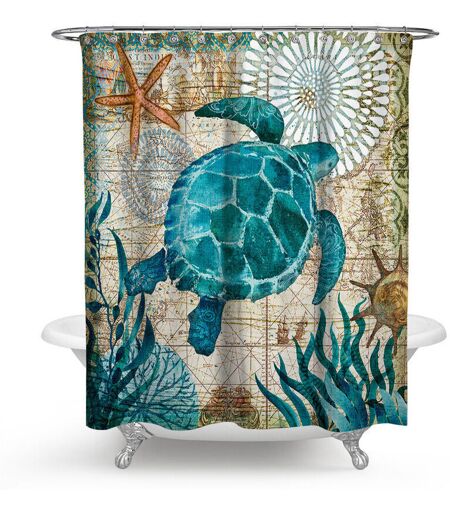 AHLSEN Tende creative con motivo retrò 3D di creature marine per la doccia del bagno di casa (150 x 180 cm, tartaruga marina)