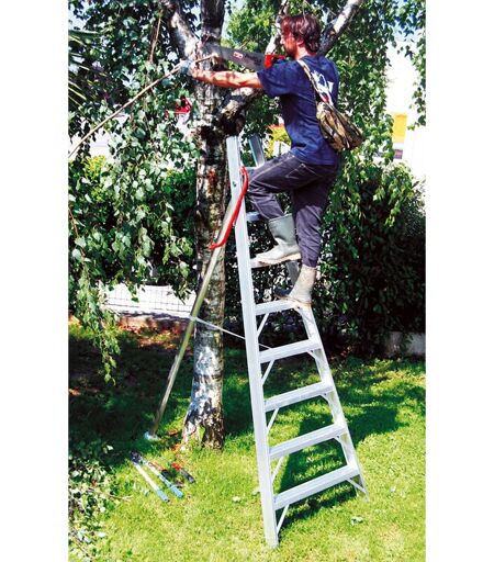 MANUTENZIONE ESTERNA - Scala agricola in alluminio, per giardinieri, raccolta di frutta o manutenzione esterna - Scala per la raccolta della frutta nei campi - Scala per lavorare in fossati o cumuli - Lavorare con tagliasiepi o cesti per frutta senza problemi SCALA SENZA PUNTE - La scala non ha punte nella parte superiore - Accorciabile di 60 cm per ridurre l'ingombro durante il trasporto e lo stoccaggio PIEDI TELESCOPICI - Scala dotata di piedini stabilizzatori in alluminio regolabili da 10 a 75 cm - Consente di variare l'altezza della scala e di garantire la massima sicurezza dell'utente - Piedino telescopico in dotazione con la scala e facile da montare STABILITÀ E LAVORO IN PENDENZA - Scala triangolare con 3 appoggi per lavorare in pendenza - Attrezzatura agricola ideale per terreni accidentati o non pianeggianti. - Perfetta stabilità su tutti i terreni, pianeggianti o in pendenza: giardino, campo, vigneto. SICUREZZA - Gradini antiscivolo da 83 mm uniti al montante tramite una ...