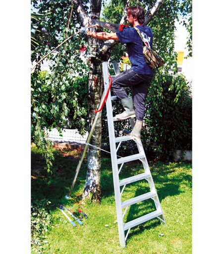 MANUTENZIONE ESTERNA - Scala agricola in alluminio, per giardinieri, raccolta di frutta o manutenzione esterna - Scala per la raccolta della frutta nei campi - Scala per lavorare in fossati o cumuli - Lavorare con tagliasiepi o cesti per frutta senza problemi SCALA SENZA PUNTA - La scala non ha punta nella parte superiore - Accorciabile di 60 cm per ridurre l'ingombro durante il trasporto e lo stoccaggio PIEDI TELESCOPICI - Scala dotata di piedini stabilizzatori in alluminio regolabili da 10 a 75 cm - Consente di variare l'altezza della scala e di garantire la massima sicurezza dell'utente - Piedino telescopico fornito con la scala e facile da montare STABILITÀ E LAVORO IN PENDENZA - Scala triangolare con 3 appoggi per lavorare in pendenza - Attrezzatura agricola ideale per terreni accidentati o non pianeggianti. - Perfetta stabilità su tutti i terreni, pianeggianti o in pendenza: giardino, campo, vigneto. SICUREZZA - Gradini antiscivolo da 83 mm uniti al montante tramite una solida ...