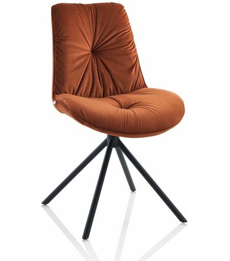 Sedia GAELLE arancione • gambe in metallo verniciato nero opaco • imbottita e rivestita in velluto colore arancione • dimensioni seduta cm. L.49 P.40 • altezza seduta cm. 45,5 • altezza schienale cm. 43 • dimensioni cm. L.49 P.53 H.89 ...